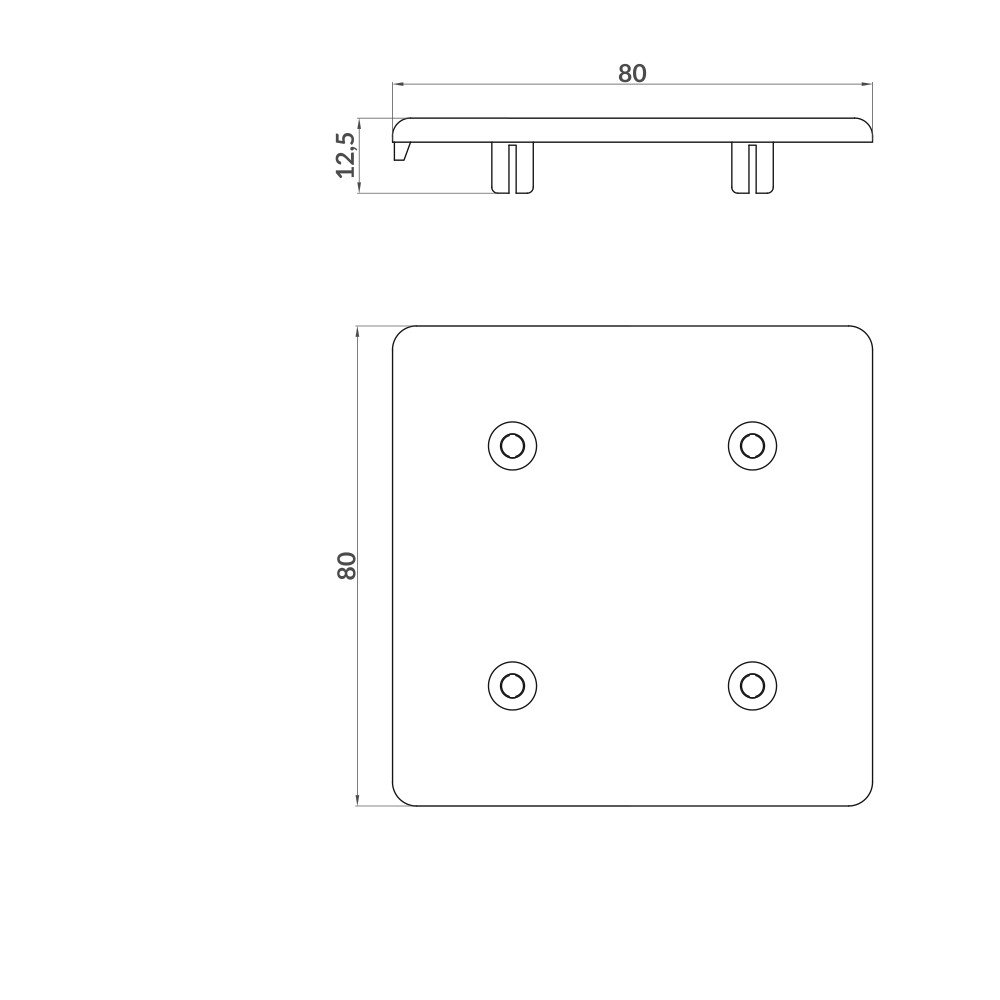 Tampa de plástico para rematar as secções do perfil onde for necessário. Compatível com os perfis modulares de alumínio do Sistema Aluskit® de 80×80 quadrados.