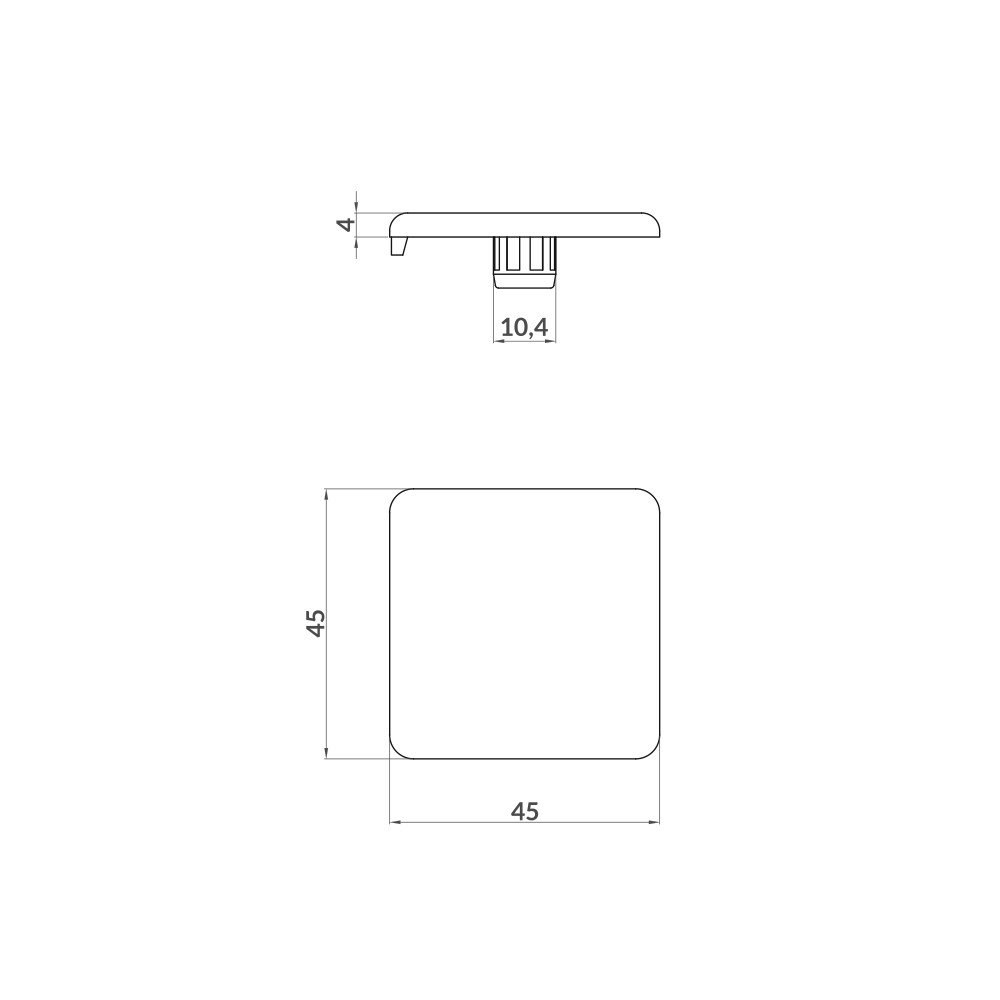 Tampa de plástico para rematar as secções do perfil onde for necessário. Compatível com os perfis modulares de alumínio do Sistema Aluskit® de 45×45 quadrados.