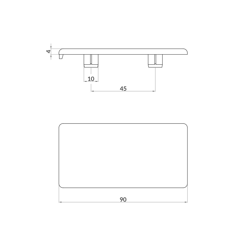 Tampa de plástico para rematar as secções do perfil onde for necessário. Compatível com o perfil modular de alumínio do Sistema Aluskit® de 90×45 retangular.