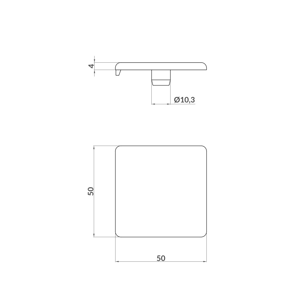 Tampa de plástico para rematar as secções do perfil onde for necessário. Compatível com o perfil modular de alumínio do Sistema Aluskit® de 50×50 quadrado. Deve ser instalada com adesivo devido ao design particular deste perfil.