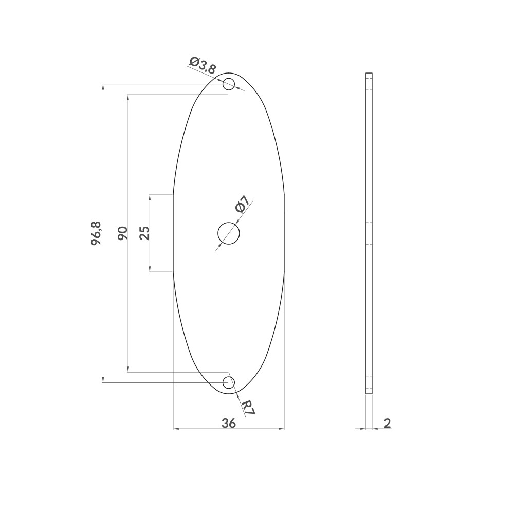 Tampa de alumínio anodizado especialmente concebida para o perfil Aluskit® oval Fokus com referência 140603.