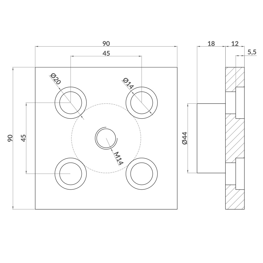 Início > Produtos > Sistema Aluskit® > Acessórios Aluskit® > Placa base reforçada quadrada – Perfil 90×90