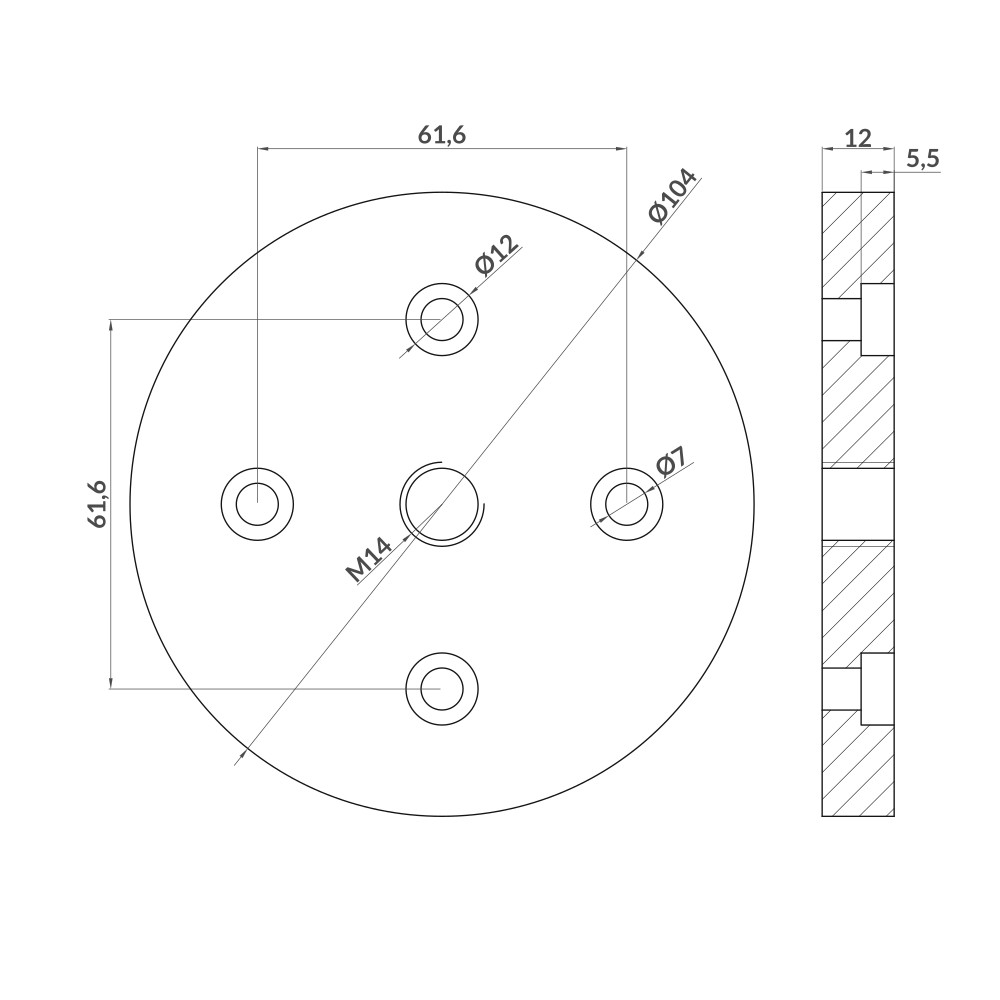 Início > Produtos > Sistema Aluskit® > Acessórios Aluskit® > Placa base lisa redonda – perfil octogonal 140130