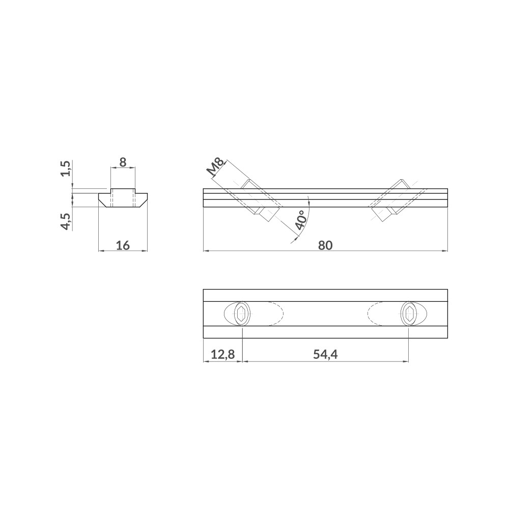Placa para unir perfis longitudinalmente no interior do canal. Compatível com os perfis modulares de alumínio Aluskit® da Série 30. Não adequada para montagens no exterior ou em ambientes húmidos. Inclui parafusos.