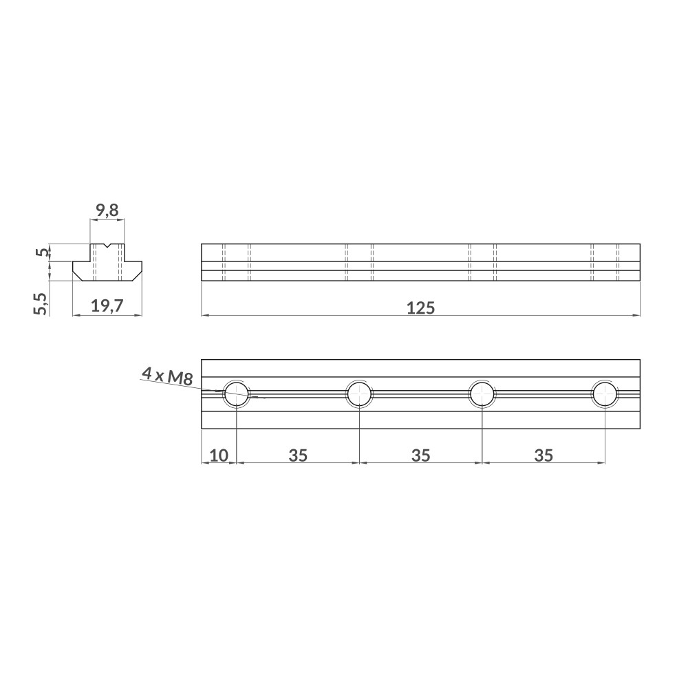 Regleta para unir longitudinalmente no interior do canal dos perfis modulares de alumínio Aluskit® das séries 40 e 45. Inclui parafusos. Não adequada para montagens no exterior ou em ambientes húmidos.