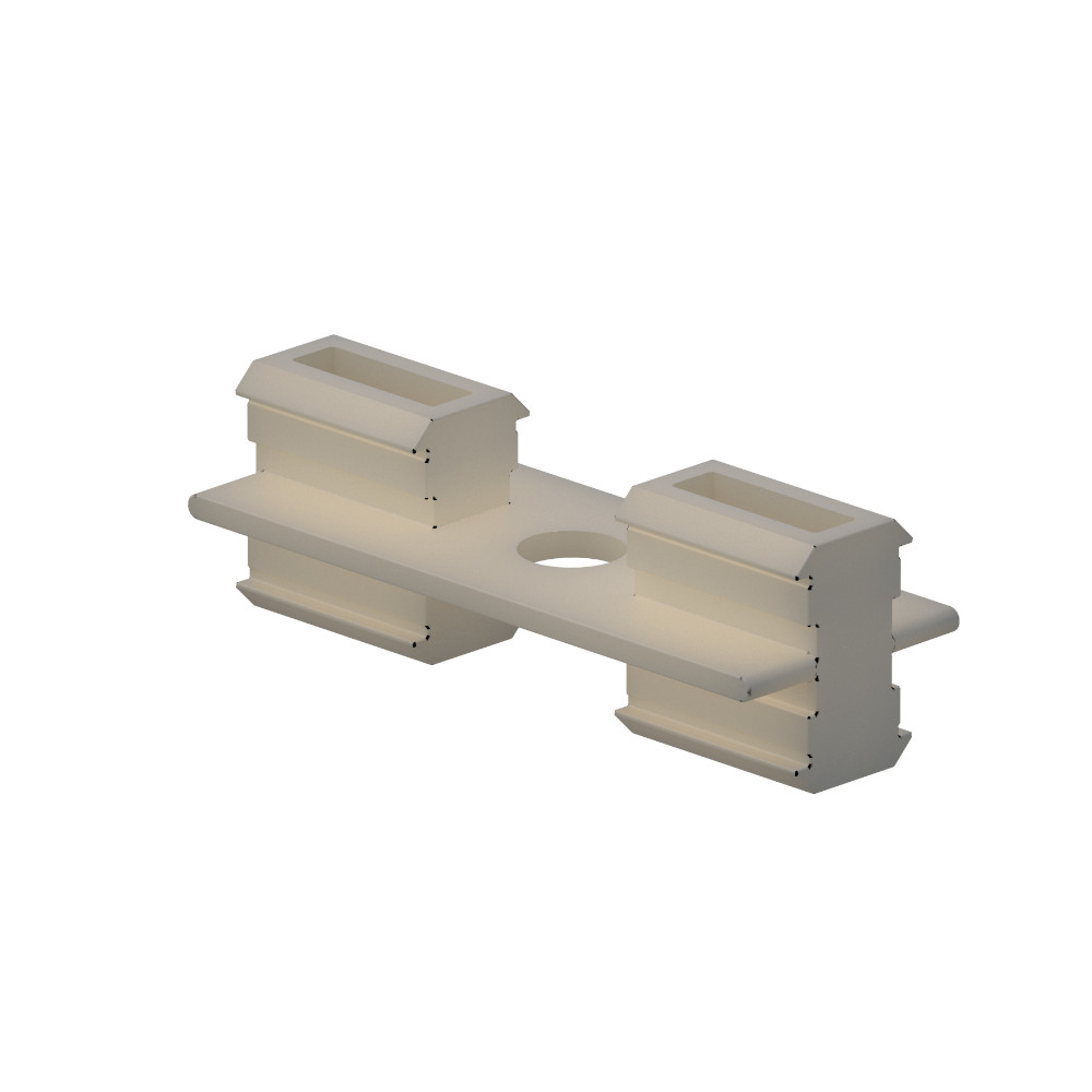 Peça guia para uniões deslizantes compatível com todos os perfis modulares de alumínio do Sistema Aluskit®. É posicionada pontualmente no canal do perfil base sobre o qual posteriormente deslizará outro.