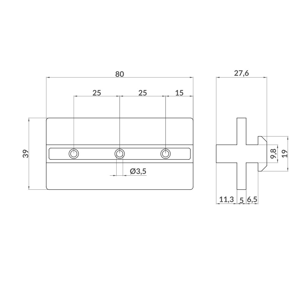 Peça guia para uniões deslizantes compatível com os perfis modulares de alumínio Aluskit® das séries 40 e 45. Principalmente indicada para realizar uniões deslizantes desmontáveis de um perfil sobre outro.