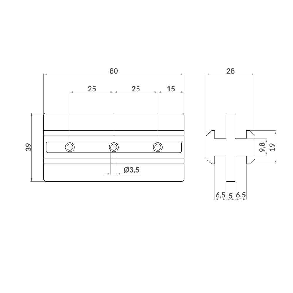 Peça guia para uniões deslizantes compatível com os perfis modulares de alumínio Aluskit® das séries 40 e 45. Principalmente indicada para realizar uniões deslizantes não desmontáveis de um perfil sobre outro.