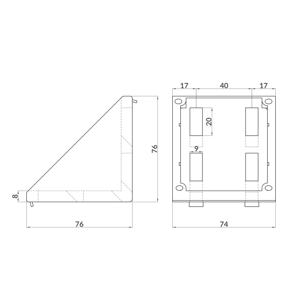 Esquadro de alumínio injetado 76x76x78 mm