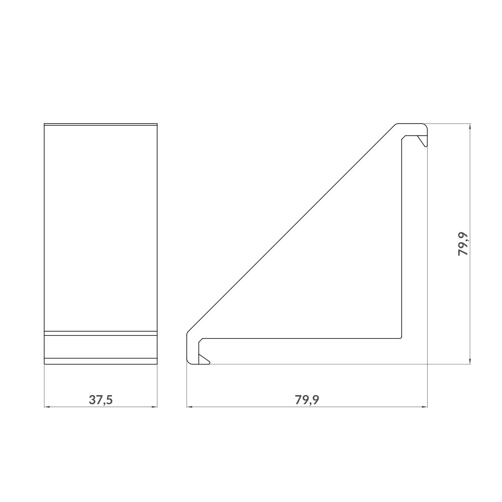 Tampa para o esquadro de alumínio injetado de 76x76x38. De cor preta. Instala-se exercendo pressão sobre a mesma contra o esquadro.