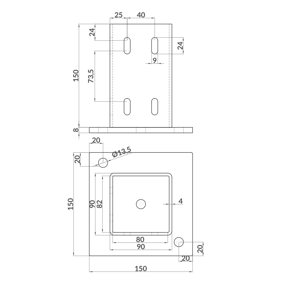 Suporte tubular para fixar à superfície perfis de 80×80.