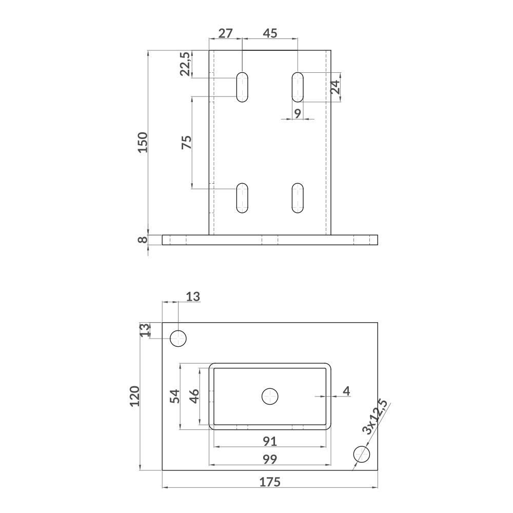 Suporte tubular para fixar à superfície perfis de 90×45.