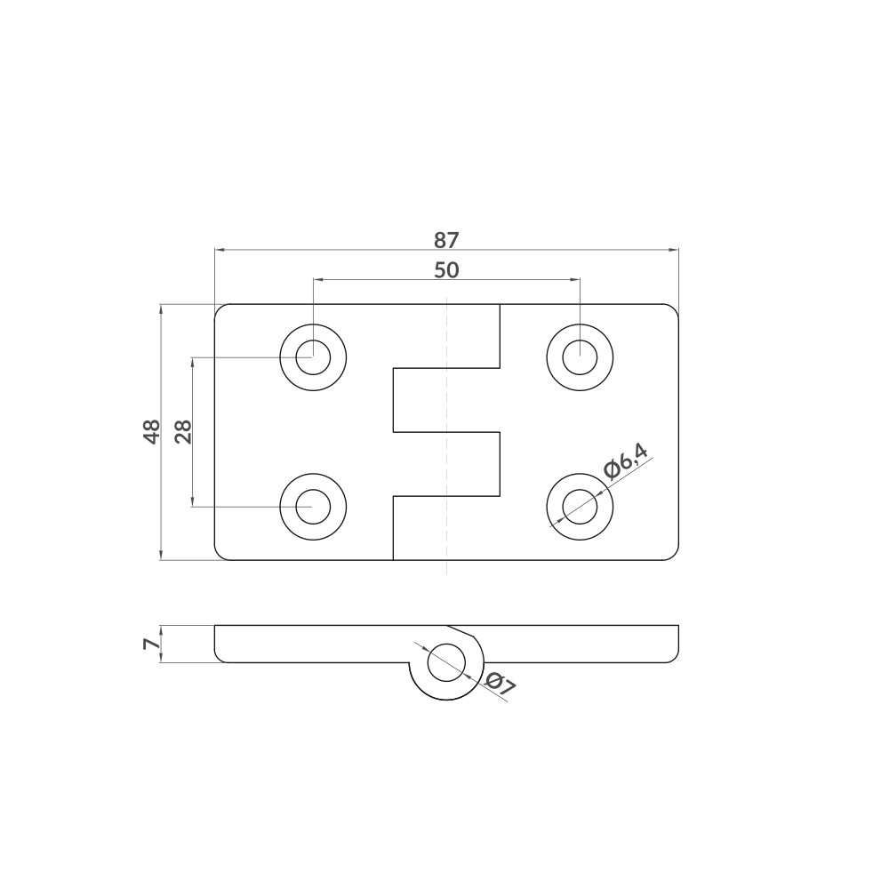 Início > Produtos > Sistema Aluskit® > Acessórios Aluskit® > Dobradiça de poliamida 48×87 4 parafusos M6