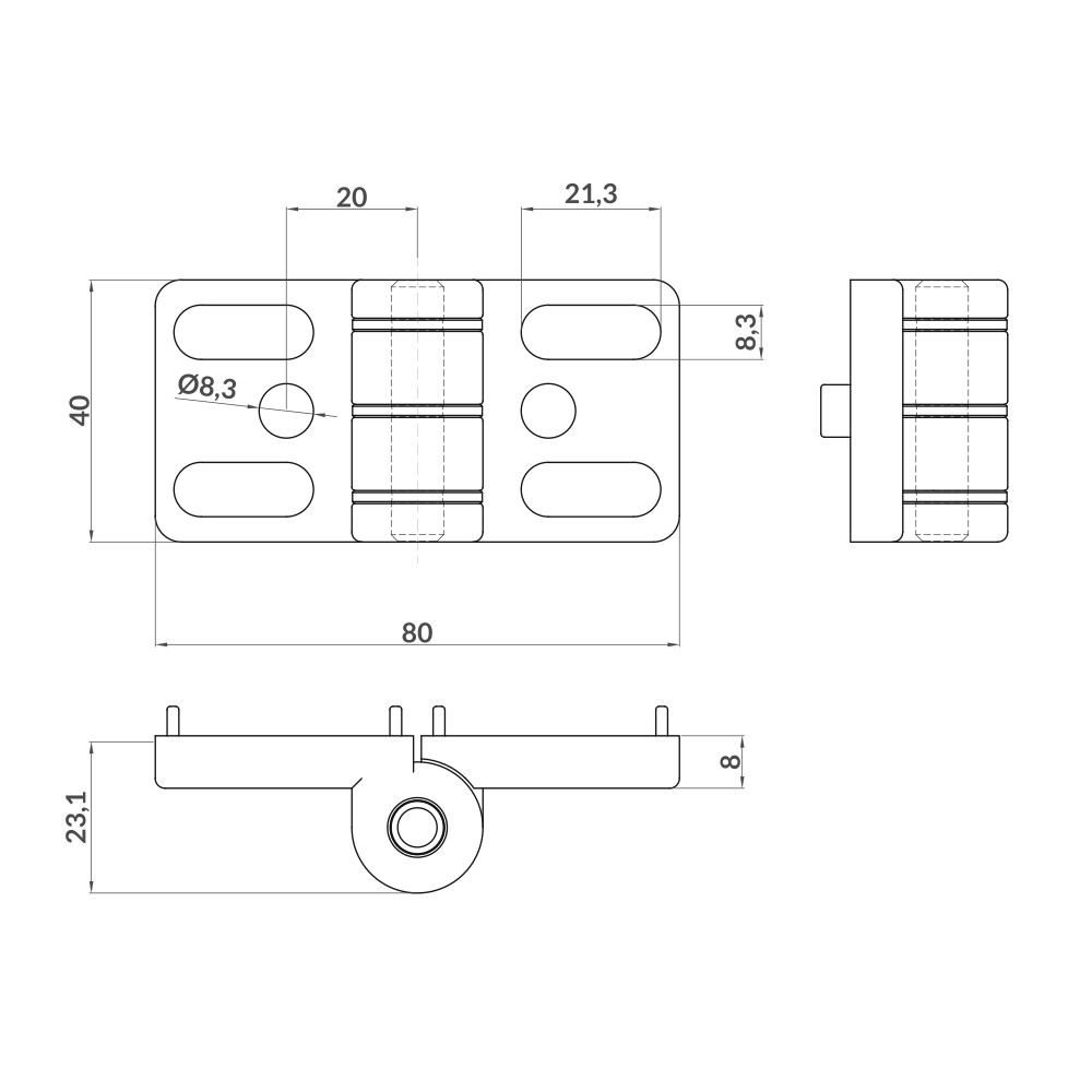 Início > Produtos > Sistema Aluskit® > Acessórios Aluskit® > Dobradiça ajustável 80×40 S/40 Zamak