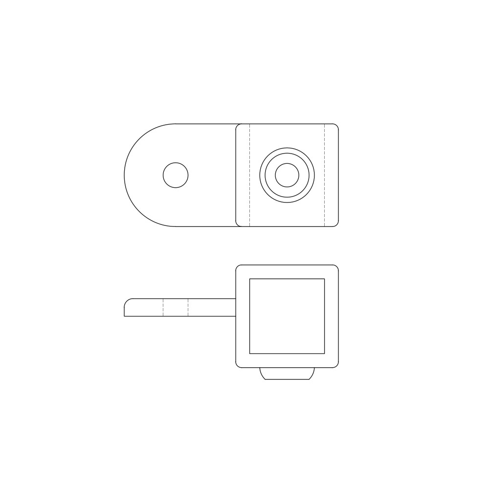 União para tubo quadrado com uma patilha paralela para uniões articuladas ou fixação de painéis. Os tubos são fixados através da pressão dos parafusos prisioneiros.