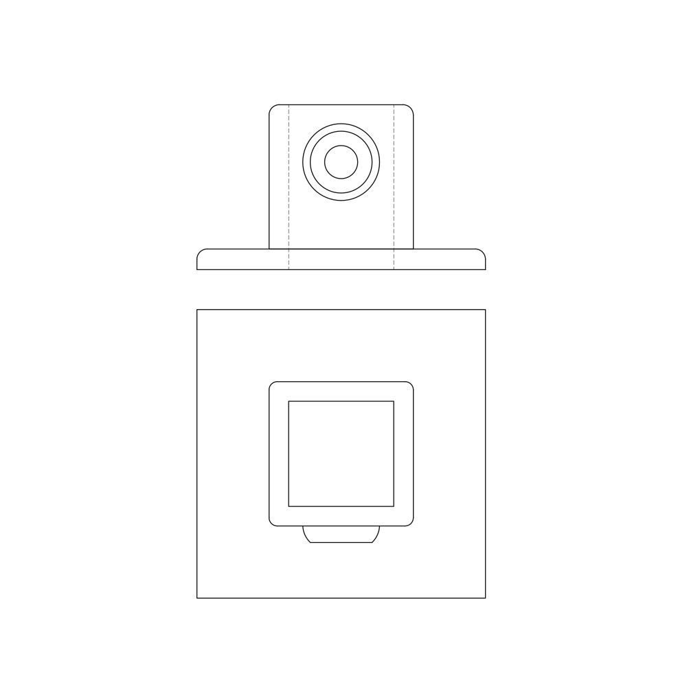 Placa base externa para tubo quadrado de 25×25. O tubo é fixado por pressão dos parafusos prisioneiros.