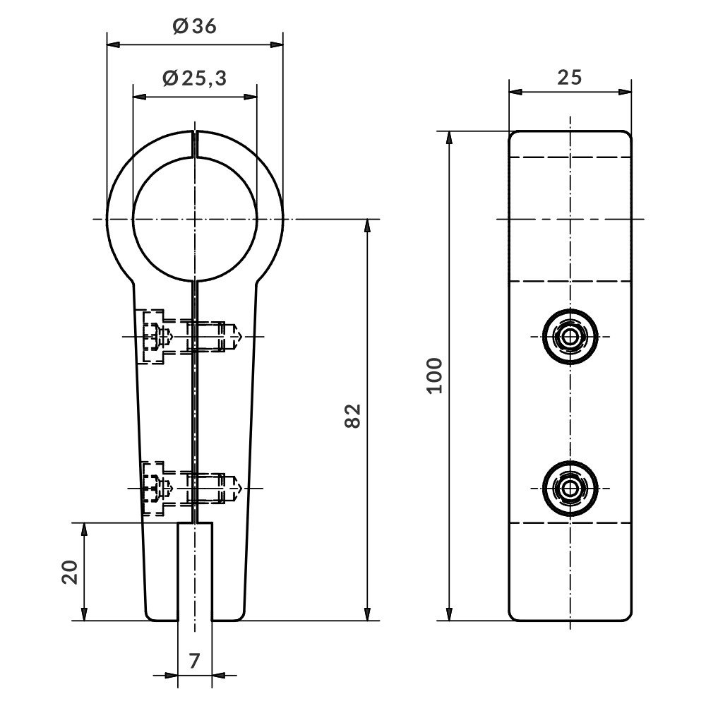 Início > Produtos > Conetor suporte lateral apoio vidro Ø25