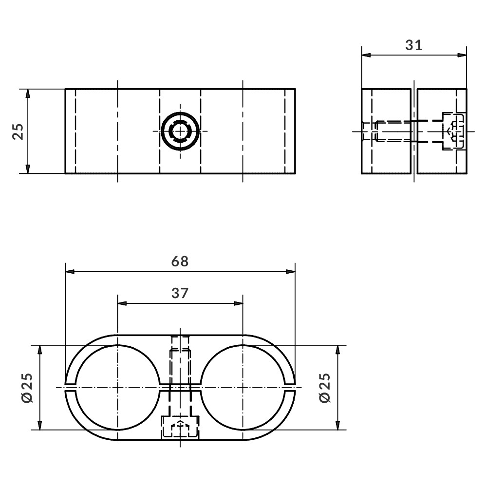 Conetor de união dupla paralela Ø25