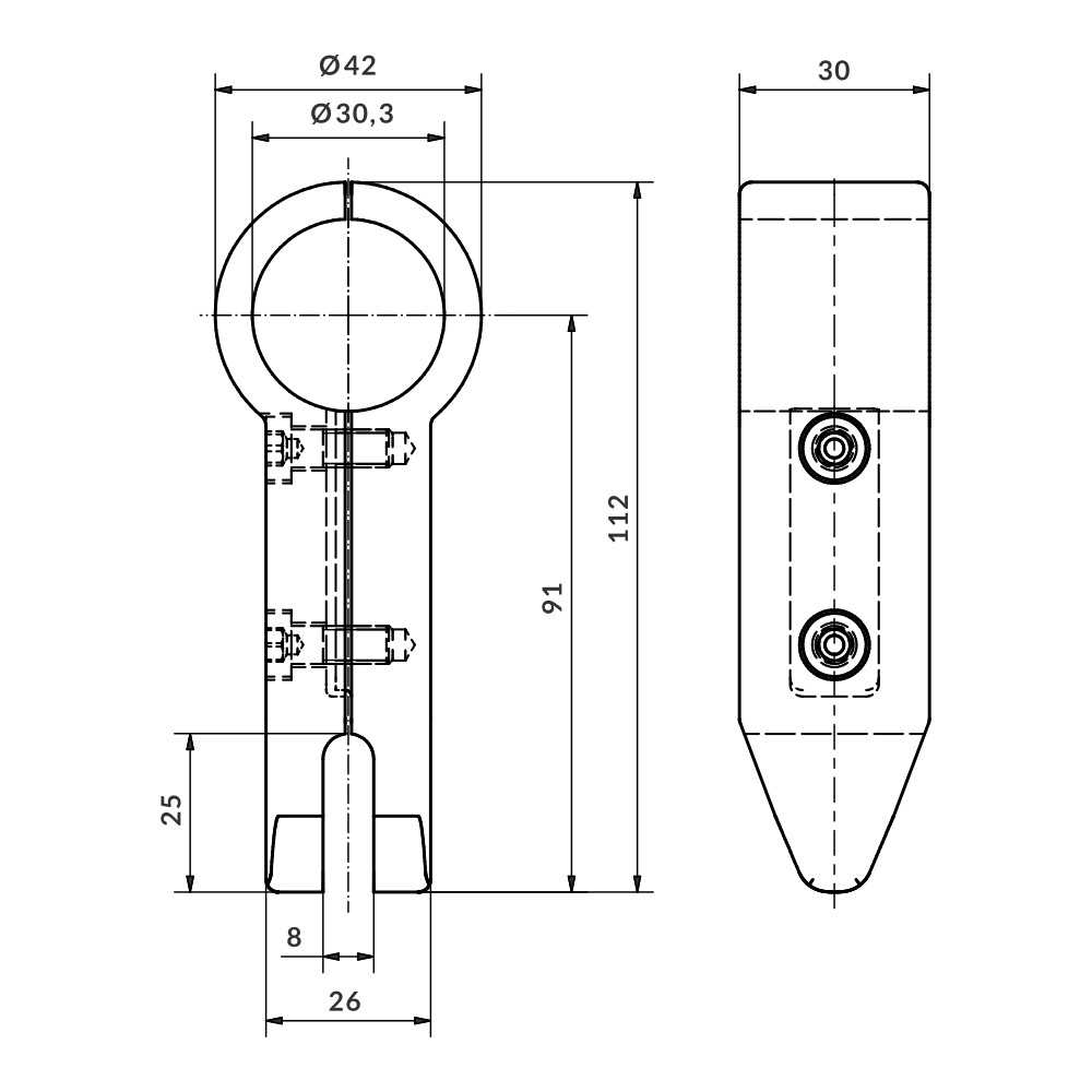 Início > Produtos > Conetor suporte lateral apoio para vidro L112 Ø30