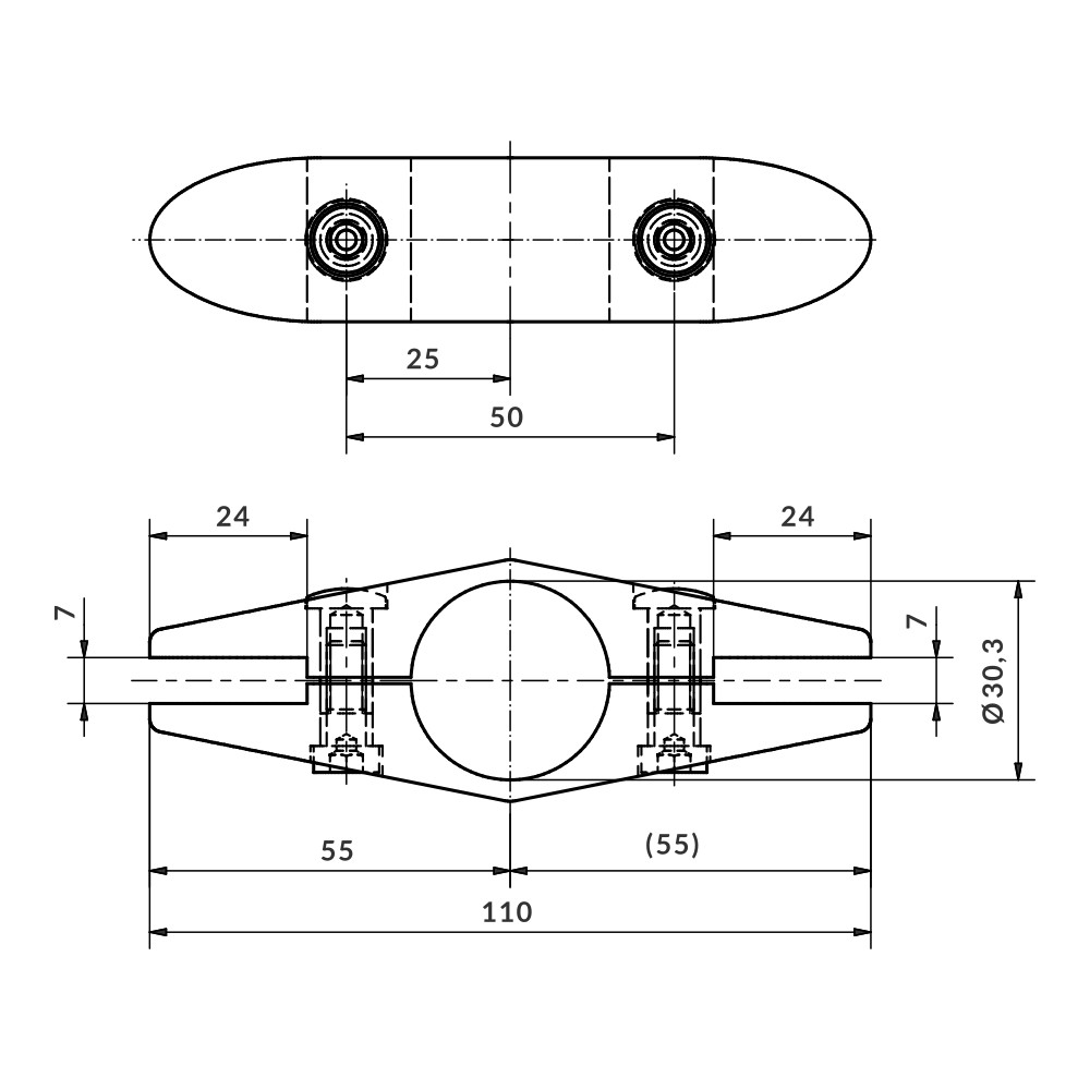 Início > Produtos > Conetor suporte central apoio vidro L110 Ø30