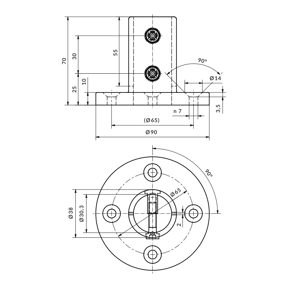 Início > Produtos > Conetor base suporte vertical 4 parafusos Ø30