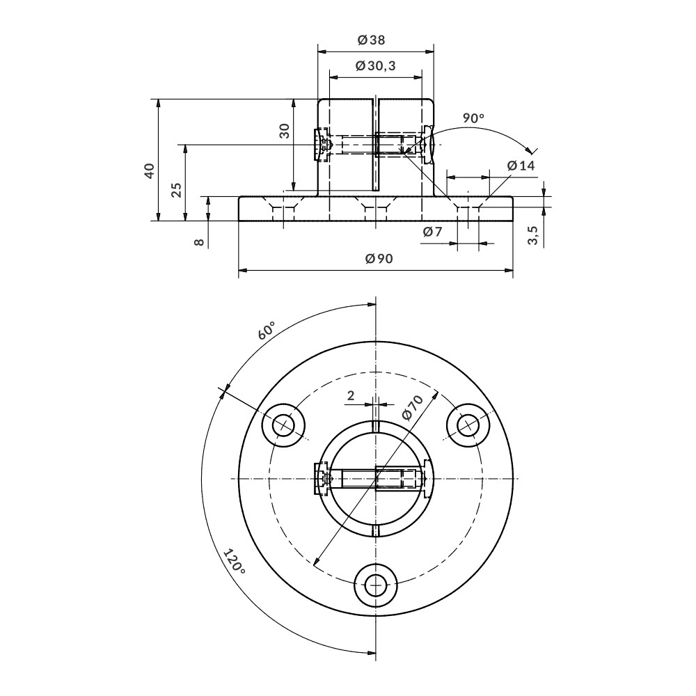 Início > Produtos > Conetor base suporte vertical 3 parafusos Ø30