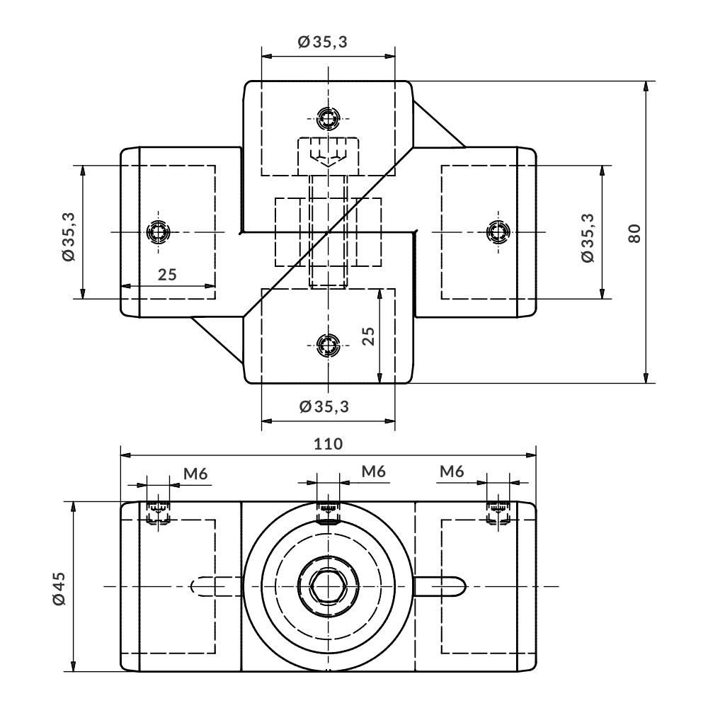 Conetor compasso 4 saídas horizontal/vertical Ø35