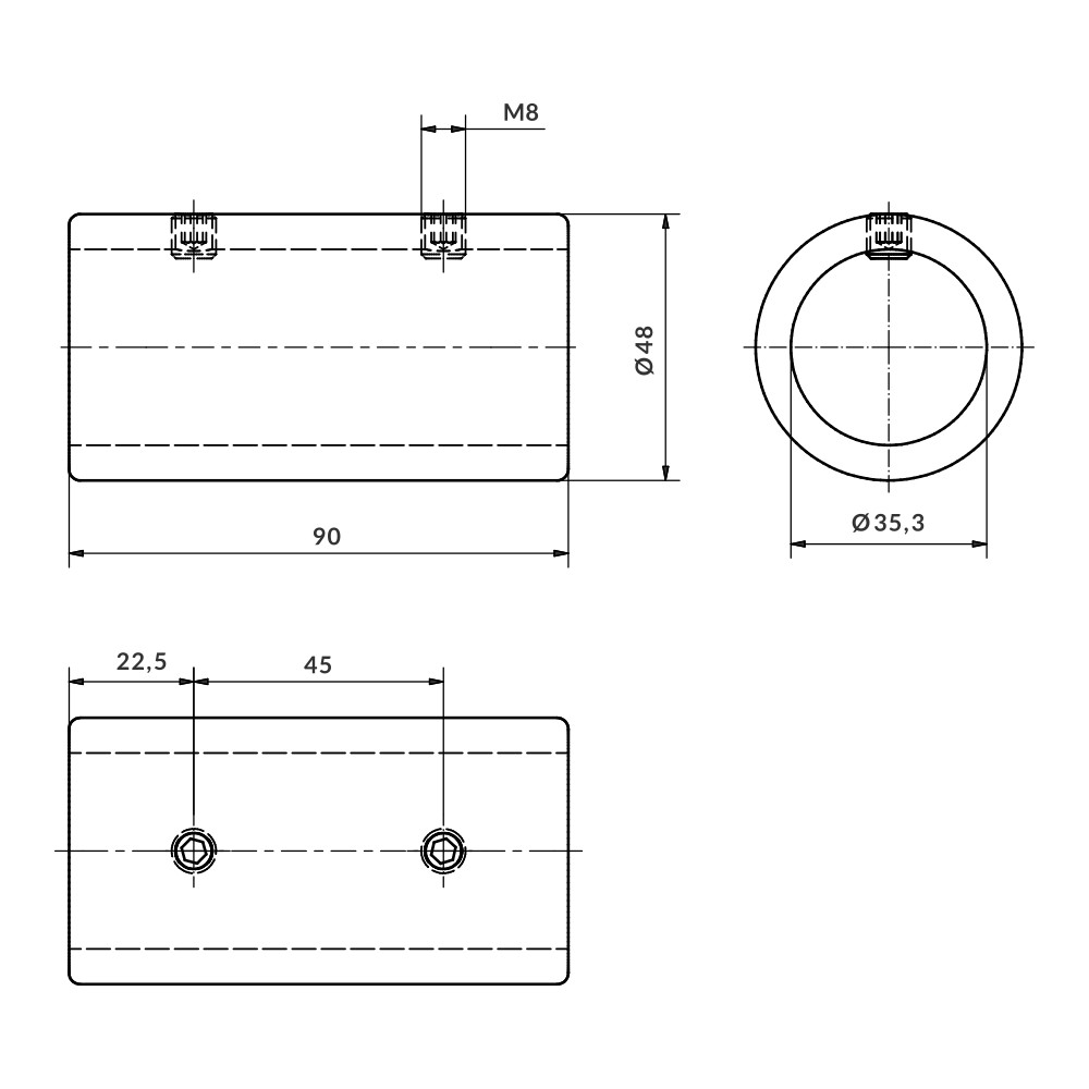 União para fixação contínua de dois trechos de tubo. Os tubos são fixados através da pressão exercida por parafusos prisioneiros. Não requer usinagem dos tubos.