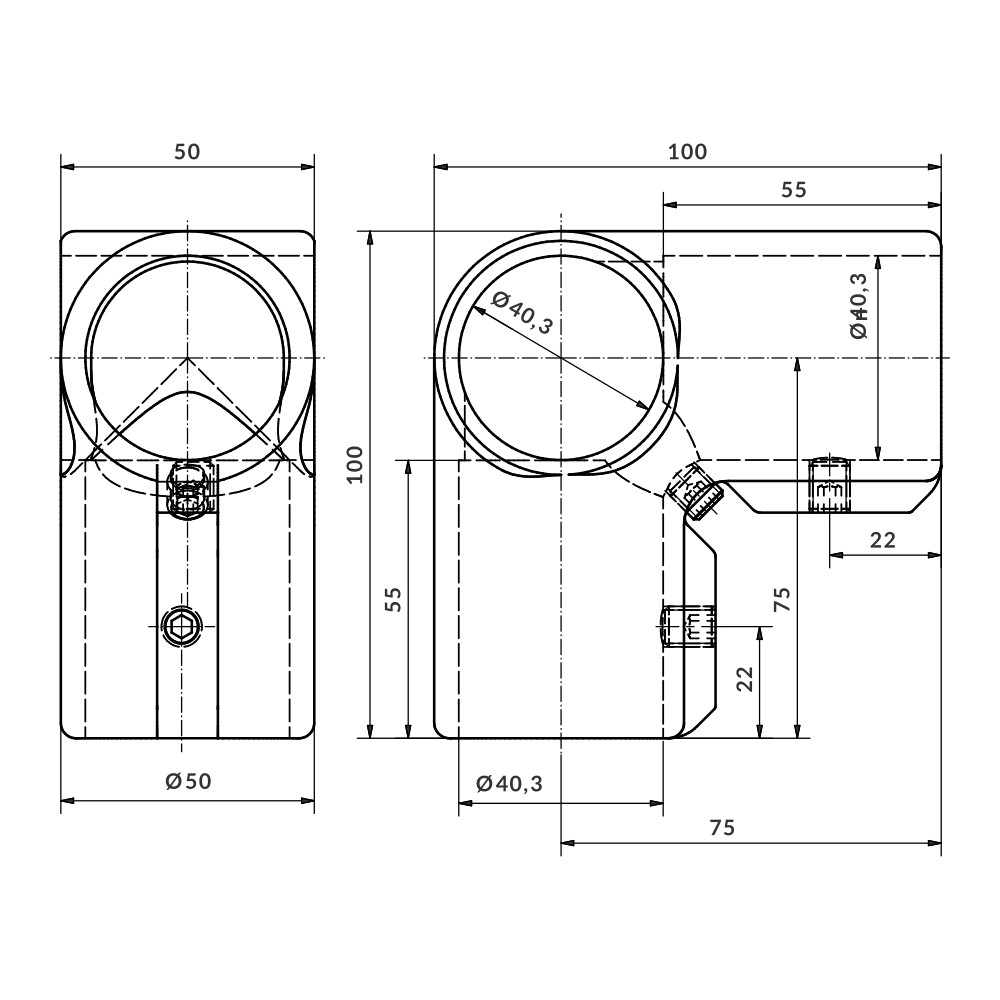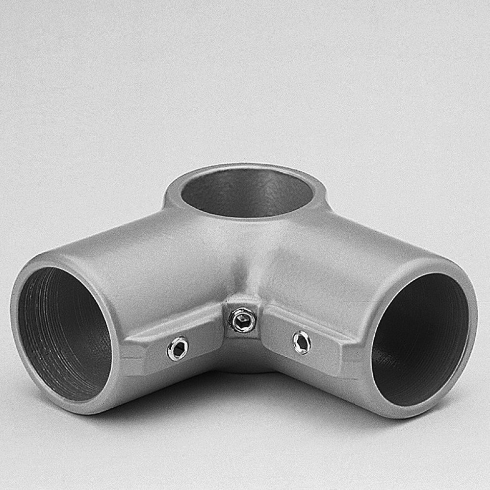 União para unir um tubo passante a dois tubos terminais a 90º entre si. Os tubos são unidos através da pressão das duas partes do União. É necessário perfurar a extremidade dos tubos para a inserção dos parafusos. Proporciona uma união robusta.