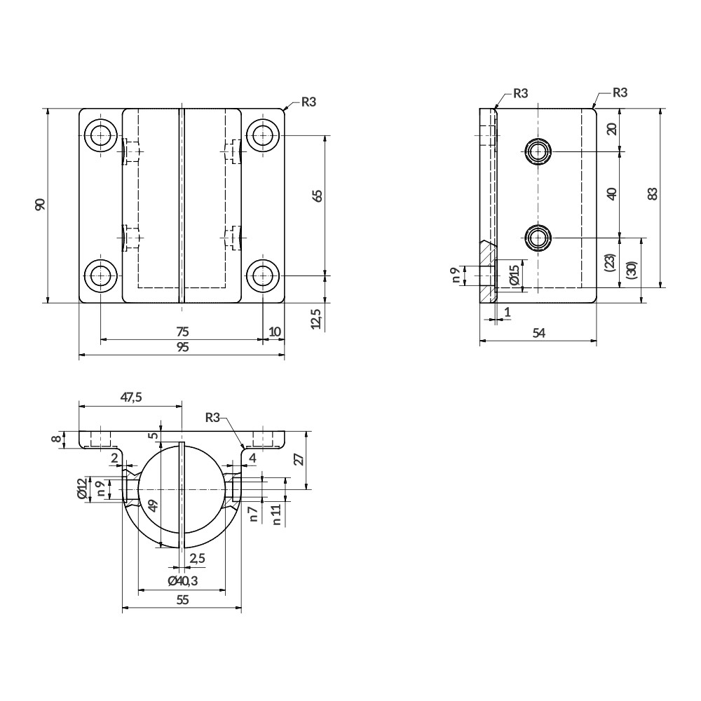 Início > Produtos > Base de suporte lateral terminal para parafusos passantes Ø40