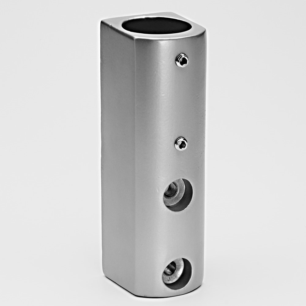 Base de fixação lateral para um tubo terminal. Fixa-se através da pressão exercida por parafusos prisioneiros. Não requer usinagem dos tubos.