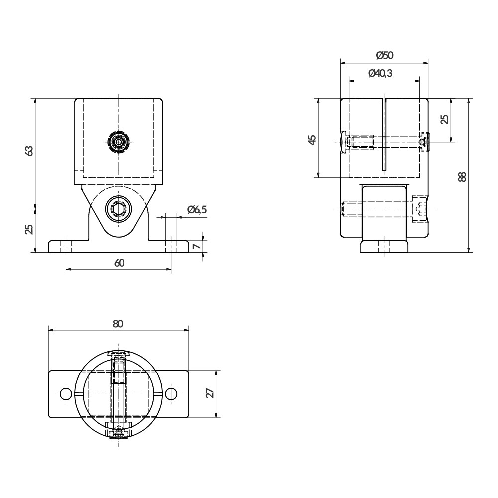 Início > Produtos > Base orientável com parafuso passante Ø40