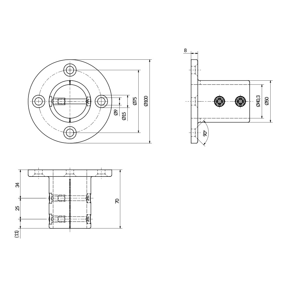 Início > Produtos > Base de suporte vertical redonda com parafusos passantes Ø40
