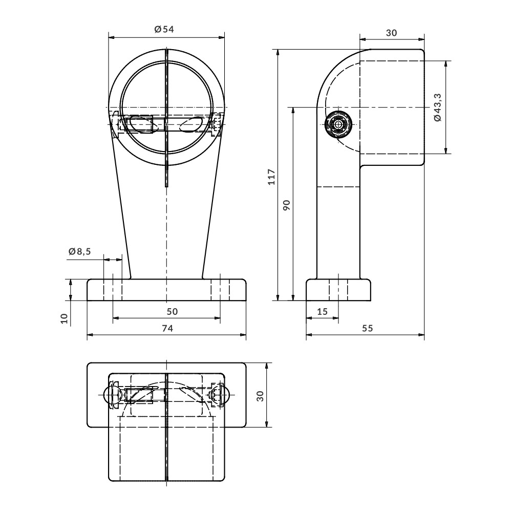 União para fixação final de um tubo paralelo à superfície. É unido por pressão das duas partes do União. Não requer usinagem dos tubos.