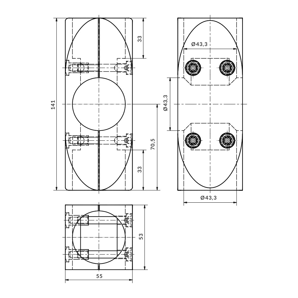 União para conectar um tubo passante a outros dois tubos terminais a 90º. São unidos por pressão das duas partes do União. Não requer usinagem dos tubos.