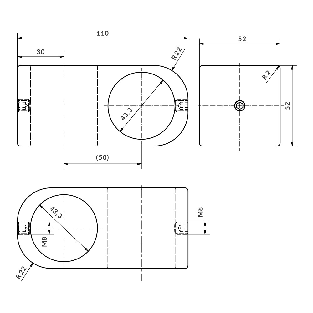Início > Produtos > Conetor de encontro cruzado deslocado Ø43