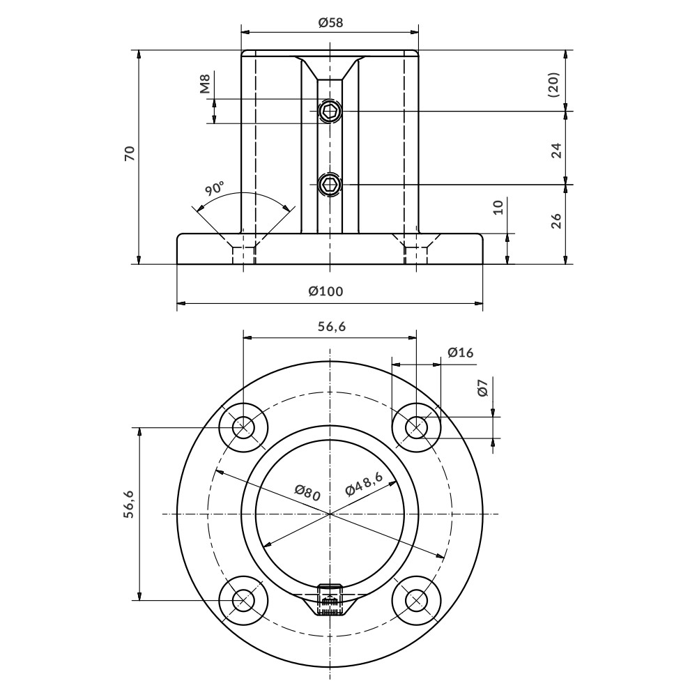 Início > Produtos > Base de apoio vertical 100×70 mm Ø48,3
