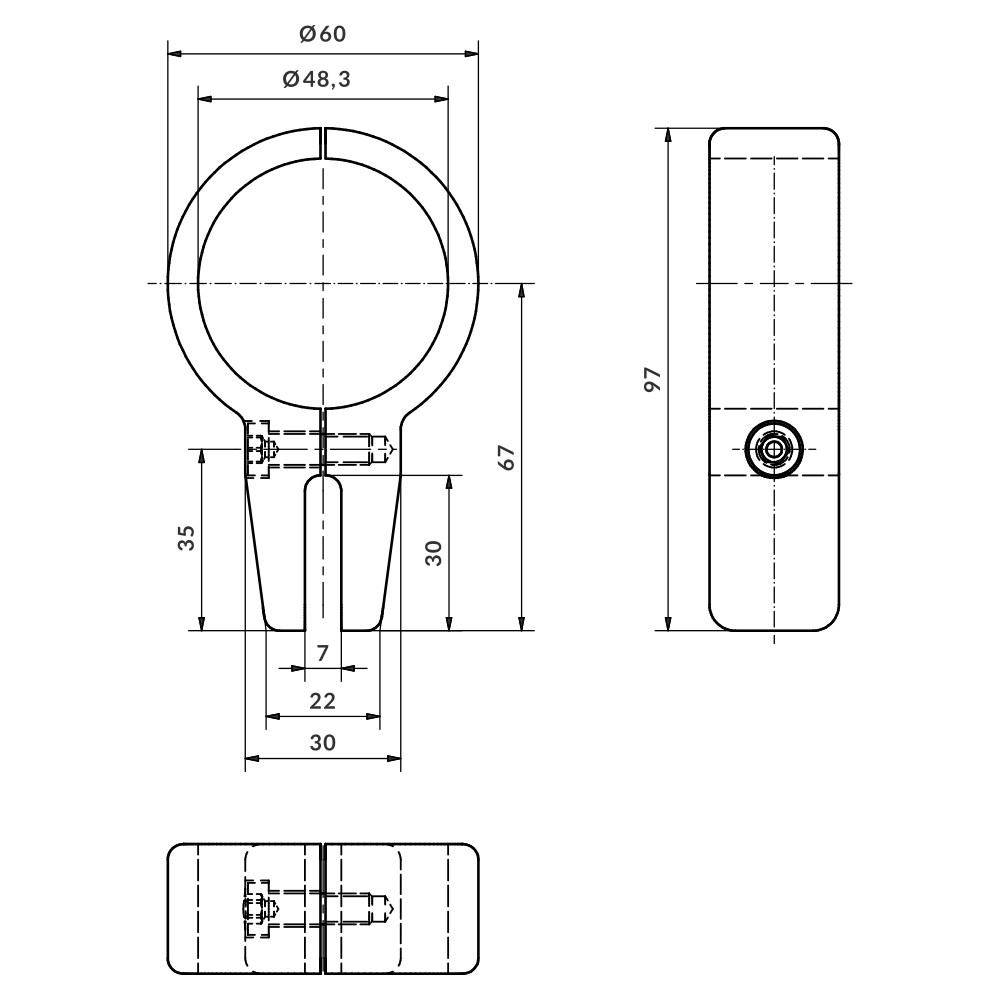 Início > Produtos > Conetor suporte lateral apoio vidro Ø48,3