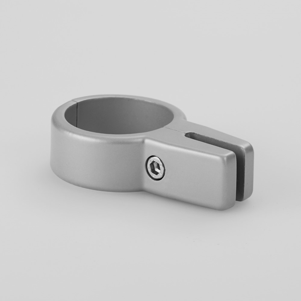 União para fixação lateral de painéis. É unido por pressão das duas partes do União. Não requer usinagem dos tubos.