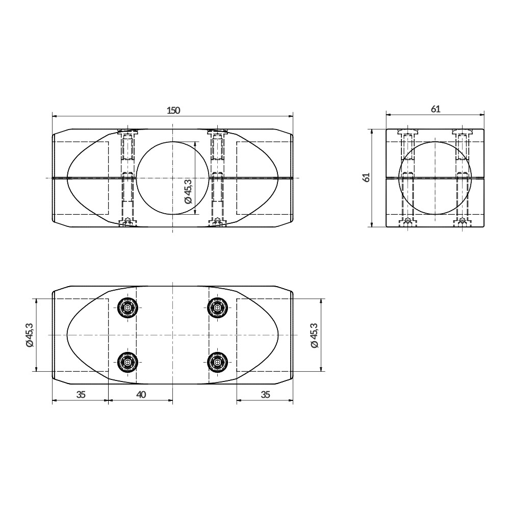 União para conectar um tubo passante a outros dois tubos terminais a 90º. São unidos por pressão das duas partes do União. Não requer usinagem dos tubos.