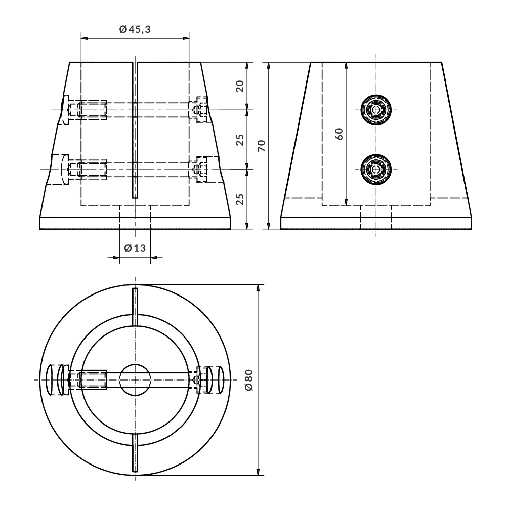 Início > Produtos > Conetor base de fixação vertical Ø45