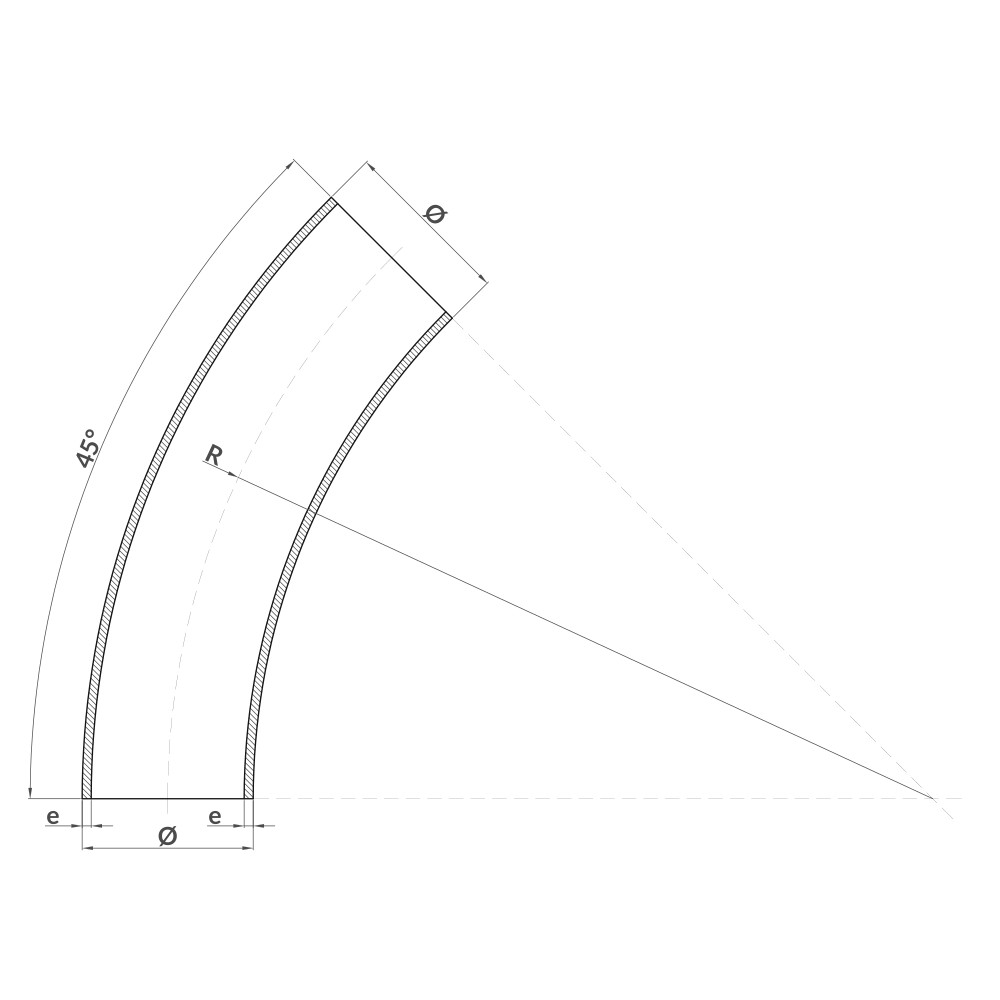 Cotovelo de alumínio de 45º EN AW 1050 O DN80 Ø89×3 sim.DIN 2605 R5xDN
