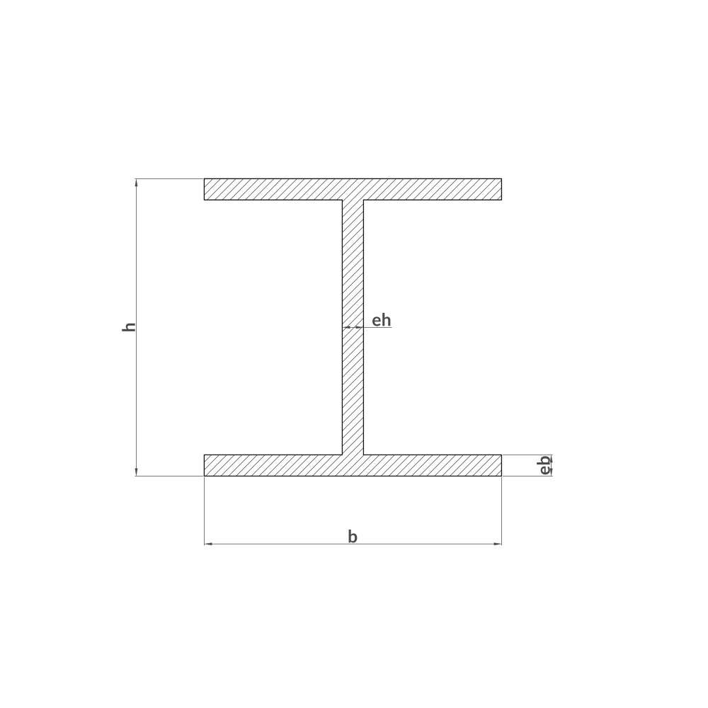 Início > Produtos > Perfis normalizados > Perfis Duplo T > Perfil Duplo T de alumínio 200x150x7/13 EN AW 6060
